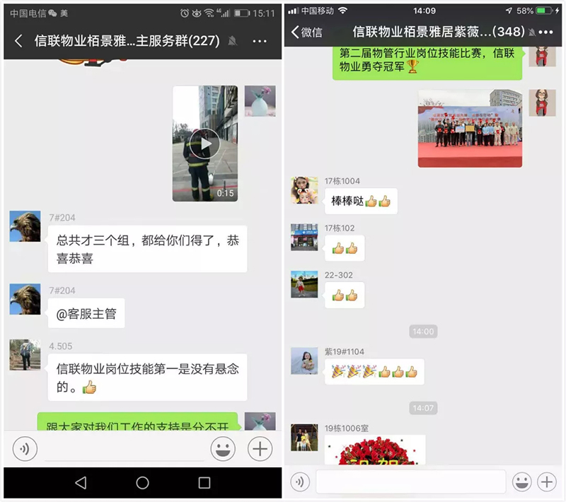 此次活動也得到業主們的大力支持,業主群被大家這樣刷屏咯~同時,他們還自發組織來到現場為信聯加油助威~