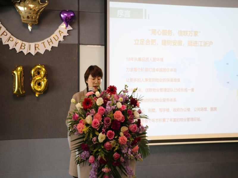 公司總經理李豐沛致生日賀辭,李總說:“信聯物業一步步走來,憑著獨特的企業文化和優質的服務理念,創立了較好的企業品牌,贏得了經濟效益和社會效益的雙豐收”。信聯物業一路走來并非一帆風順,其中有各種艱辛、各種波折,經歷了許多坎坷和困難。但是,我們相信,在公司李總的帶領下,信聯物業一定會越來越好,在這十八年的起點上,我們乘風破浪,再創輝煌。