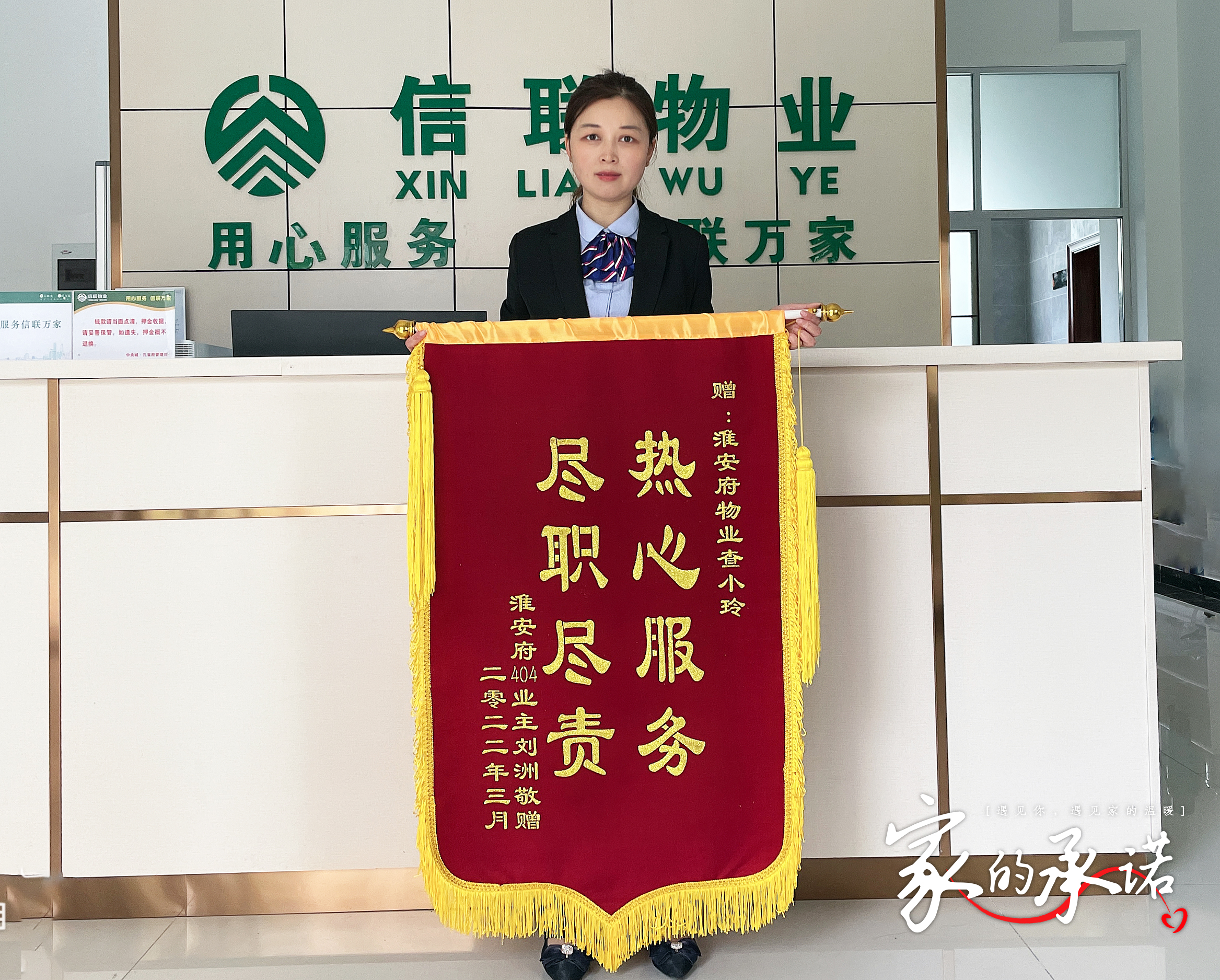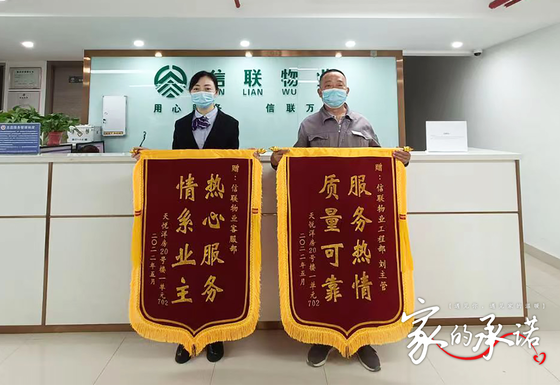 在信聯社區里,每一個故事的情節都不盡相同,卻總飽含溫情,但每一段故事里,都是美好生活的模樣,一面錦旗,一封感謝信,都記錄著我們與業主之間溫情感人的故事...“用平凡的付出,兌現‘美好生活’的承諾...”