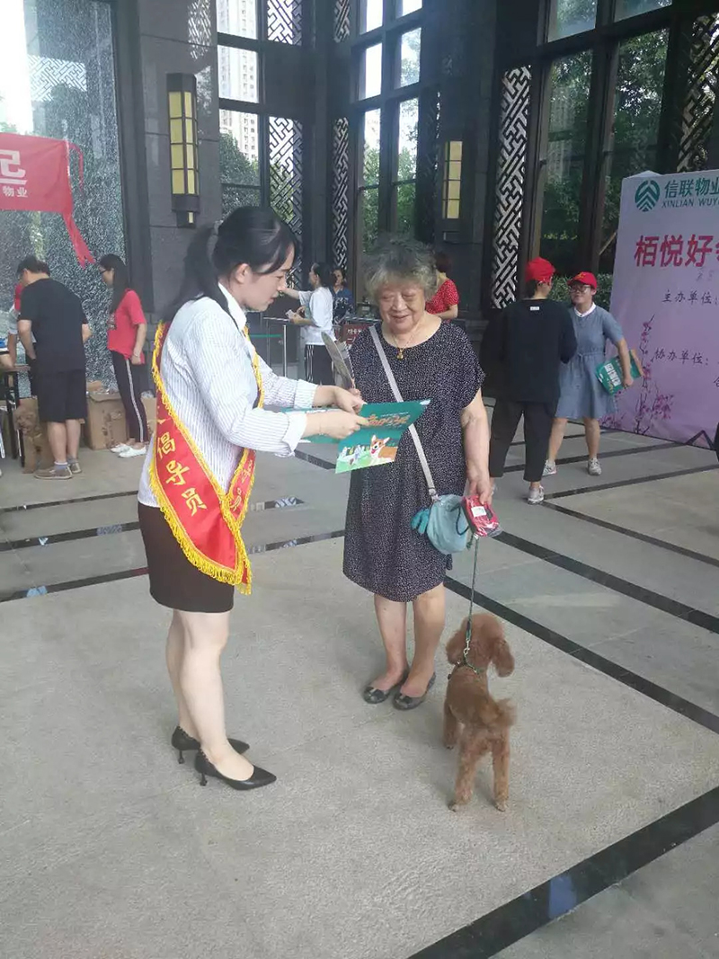 8月30日下午,信聯物業置地廣場管理處聯合荷葉地街道凱旋門社居委在栢悅公館小區開展了一系列文明養犬宣傳活動,倡導文明養犬,宣傳培養養犬人的良好習慣,以更好的促進小區和諧氛圍建設。