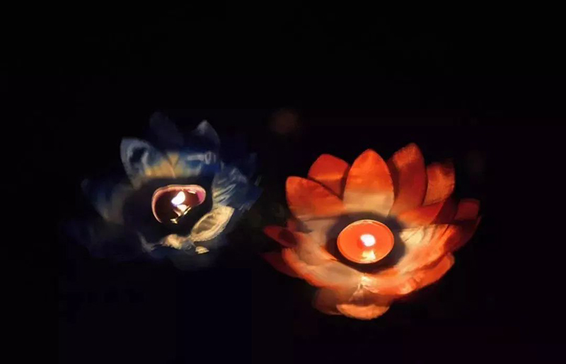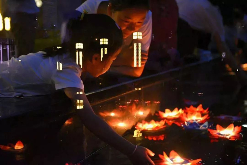 再一起將一個個花燈陸續放入水中