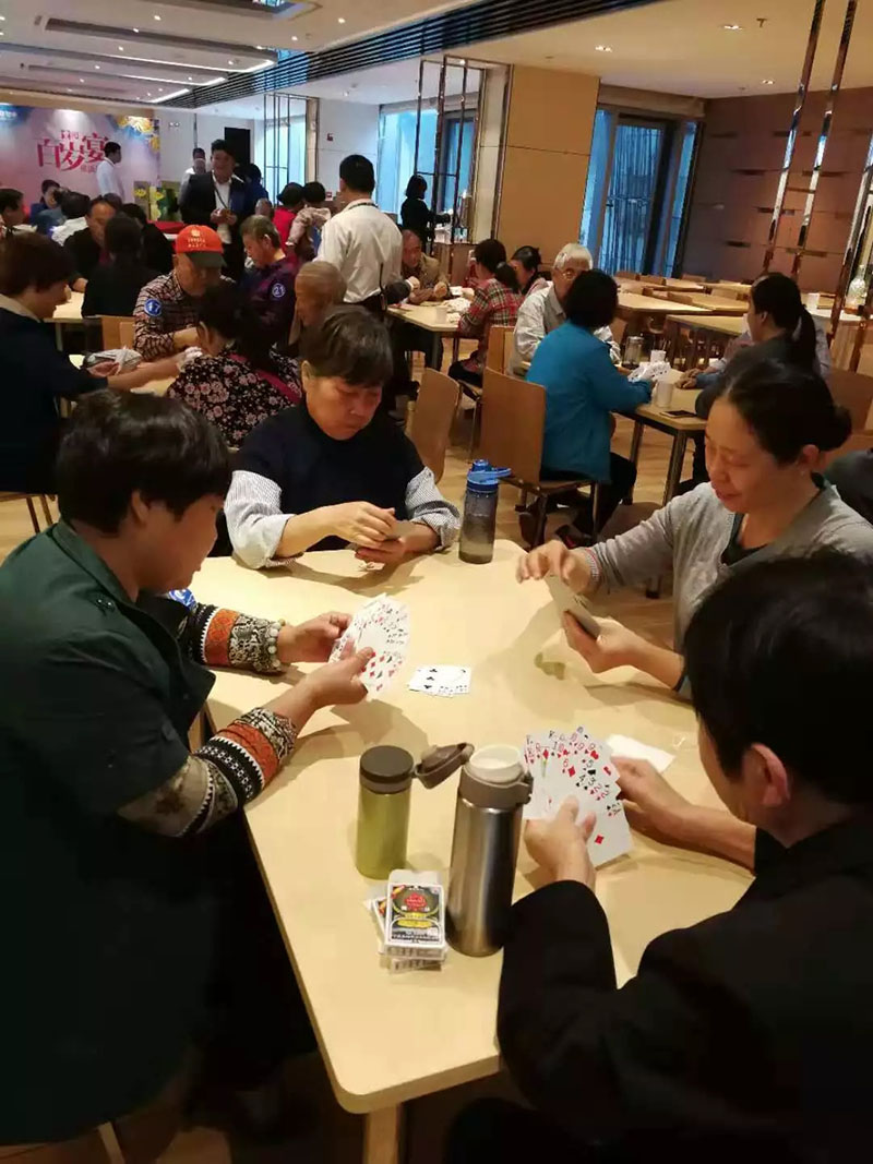 九九重陽節,陽光和煦,丹桂飄香。安徽信聯物業特別策劃了一場暖心的“重陽百歲宴暨信聯杯?摜蛋挑戰賽”,本次重陽節活動分栢味軒食堂及栢景灣食堂兩地進行,吸引了眾多老年業主報名參與。