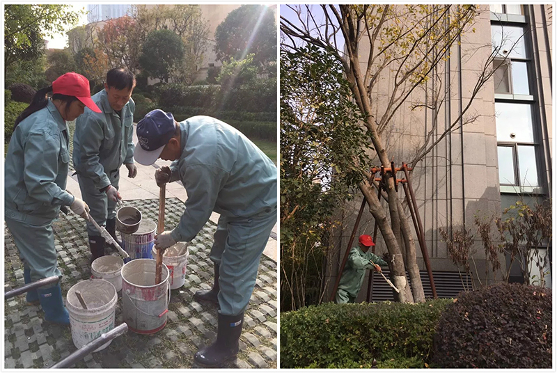 天氣越來越冷,不能移動的植物們怎么辦?別擔心!專業的綠化工已經準備好了,用心呵護每一個生命~