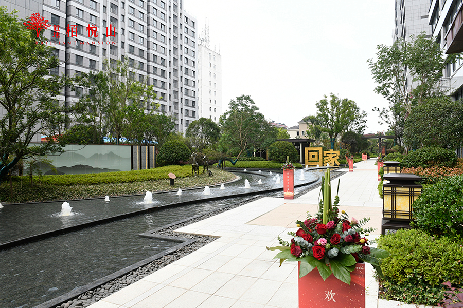 栢悅山于2019年11月交付,占地37.58畝,總建筑面積6.9萬方,項目規劃建設4棟高層及2棟雙拼,以及一棟集中式商業。產品形態豐富,高低搭配,擴大公共空間。為提升小區整體生活品質,項目采取完全人車分流設計,避免任何小區車輛交通對以后生活所造成的干擾和尾氣污染等,方便老人及兒童在小區安全活動玩耍;小區綠化方面,采用多重立體綠化,打造大而整的園林景觀,增強鄰里交流活動空間,從小區主入口依次遞進,從歸家即開始享受賞心悅目的園林景觀。